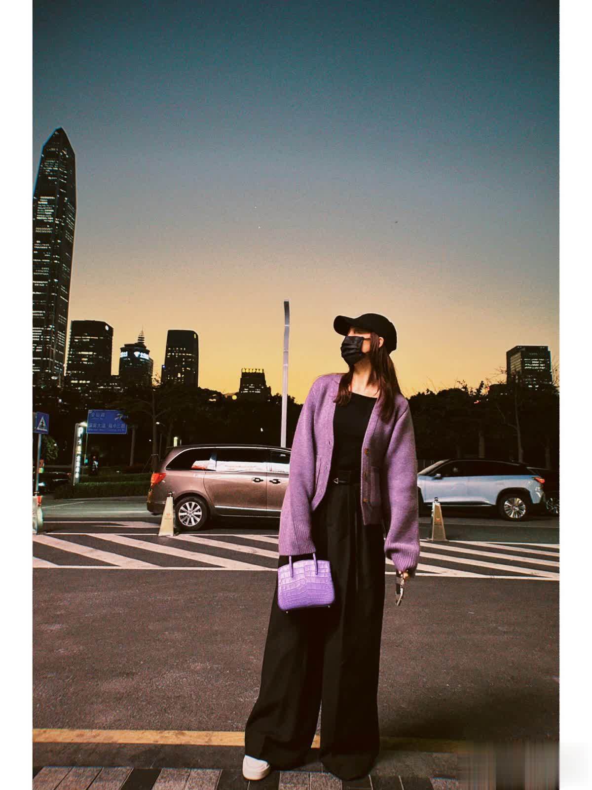 紫色韵味十足,王鸥的这件紫色开衫外套如剥了皮的葡萄般亮眼明艳。其面料有质感,不像薄开衫那样软塌无形,有型的面料会显得人更贵气。开衫外套搭配金色纽扣设计,更添富家千金味道。内搭和下半身选择简单,下半身是宽松休闲裤,搭配短袖或休闲开衫都很有质感。内搭与裤子颜色相同,整套造型看似普通,实则细节处彰显贵气,是都市女性常见造型。穿这种衣服时,要注意配饰与外套的协调性。